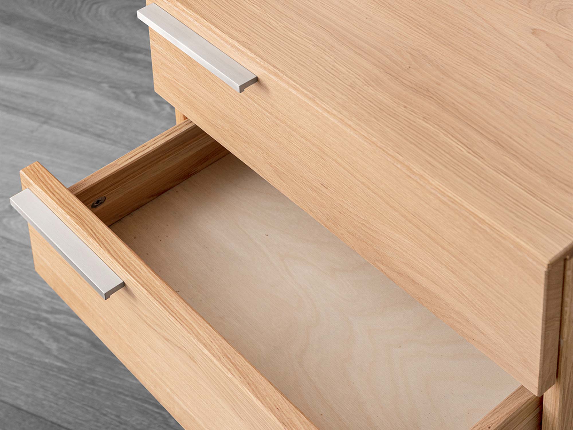 Trzy szuflady to idealne rozwiązanie dla osób ceniących porządek. Możesz w nich przechowywać książki, kosmetyki, ładowarki czy inne drobiazgi, które chcesz mieć pod ręką. Zastosowany system Softclose Haefelle gwarantuje, że każda szuflada zamyka się płynnie i bez hałasu. To komfort, który docenisz szczególnie wieczorami, gdy dom zasypia, a Ty nie chcesz nikogo obudzić.