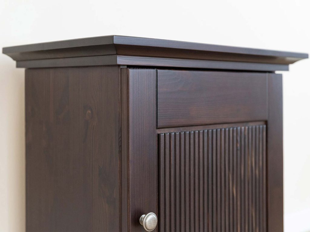 Elegancki nowoczesny sosnowy mebel Kalari została wykonana z litej sosny – materiału, który świetnie odnajduje się w meblach użytkowanych na co dzień. Jest trwała, przyjemna w dotyku i – co ważne – pięknie się starzeje. Farba wodna o 70% kryciu chroni powierzchnię, a jednocześnie nie zamyka porów drewna; pozwala mu „oddychać” i eksponuje rysunek słojów. Dzięki temu każda szafka jest inna, a Ty zyskujesz w domu autentyczny, naturalny akcent.