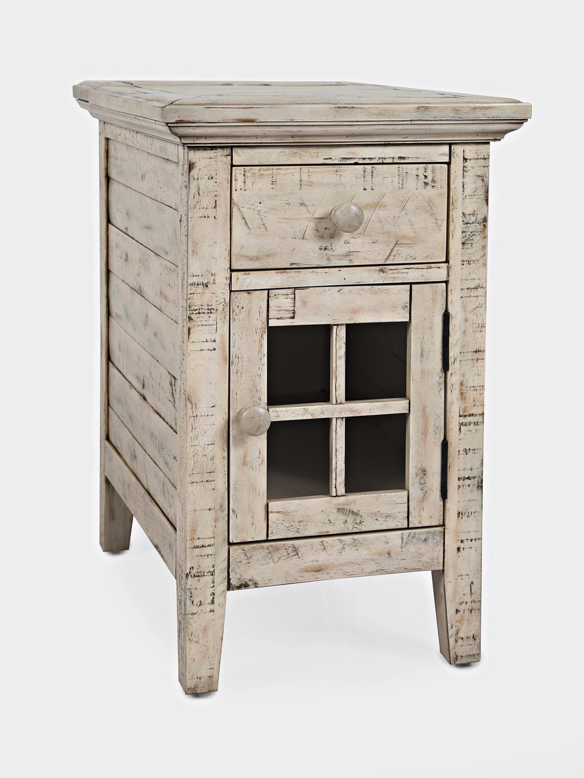 Stylowa i funkcjonalna szafka nocna w kolorze kości słoniowej, która idealnie wkomponuje się w każde rustykalne wnętrze. Wykonana z wysokiej jakości drewna akacji, z charakterystycznymi przetarciami w stylu shabby chic. Dzięki wbudowanemu gniazdu USB, szafka staje się nie tylko elegancka, ale i niezwykle praktyczna – doskonała do sypialni, gdzie funkcjonalność idzie w parze z estetyką. Idealny wybór dla osób, które szukają mebla łączącego klasyczny wygląd z nowoczesnymi rozwiązaniami.
