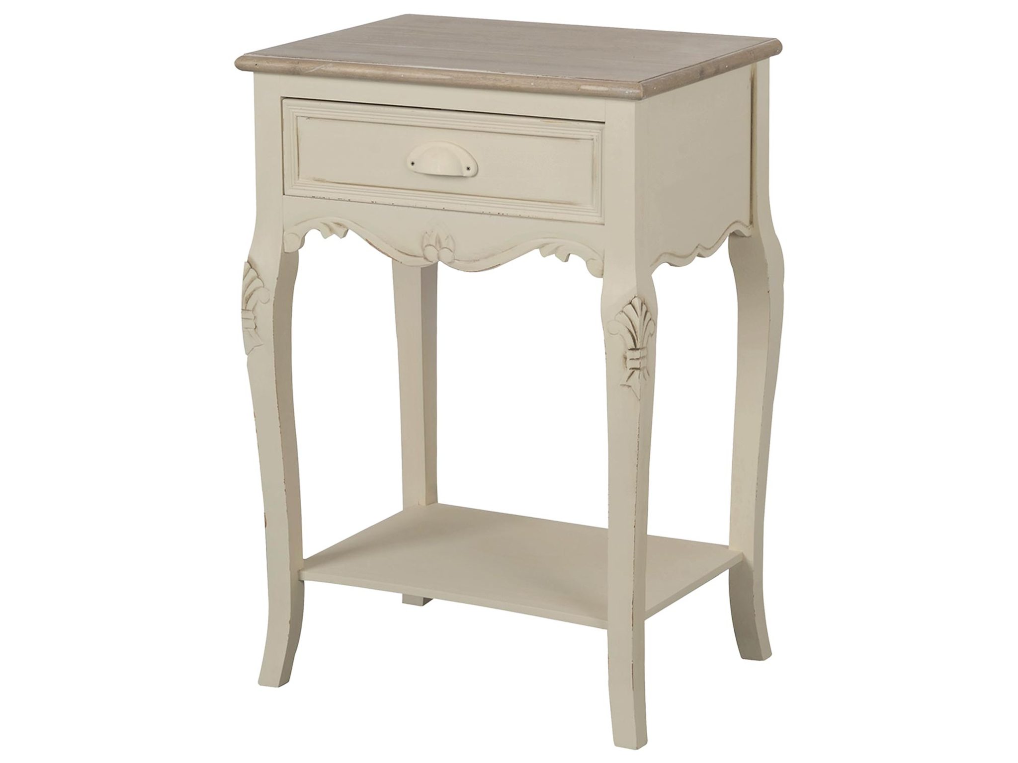 Szafka Nocna Prowansalska z Rzeźbieniami Kremowa i Jasnobrązowym Blatem – Sorrento