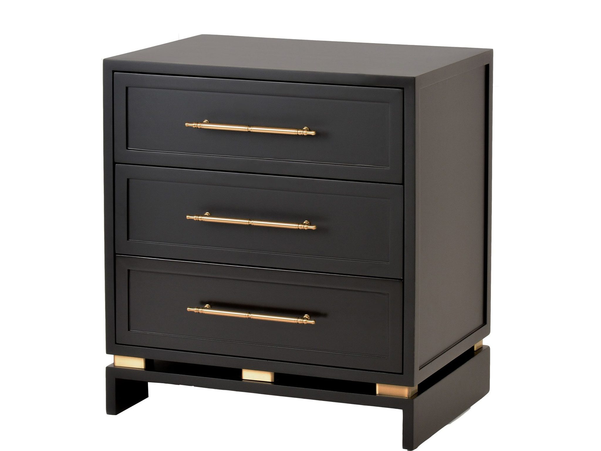 Czarna komoda z drewna wiązu z ukośnym złotym detalem