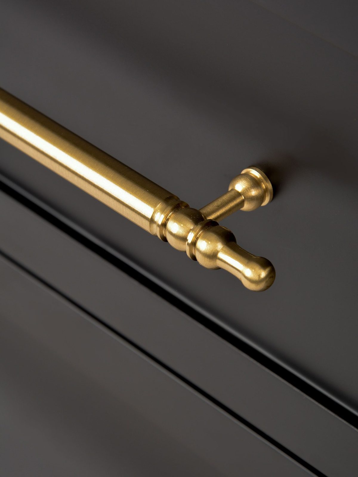 Designerska komoda z litego wiązu z trzema złotymi uchwytami