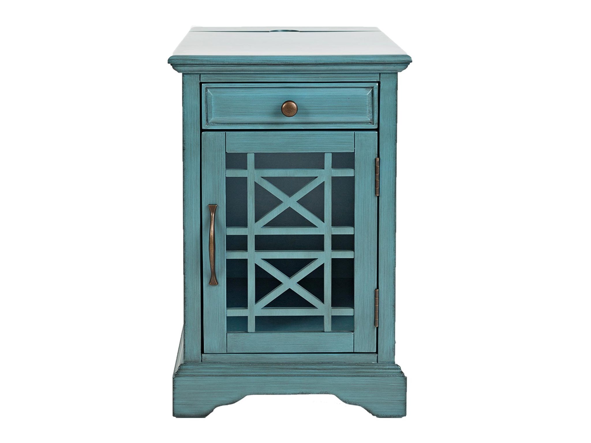 Szafka nocna niebieska z ozdobnymi szprosami i szufladą – Avola