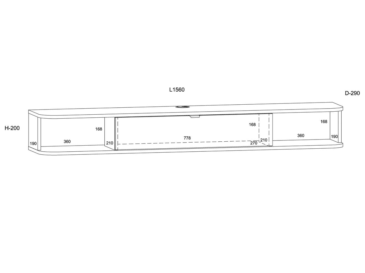 Szafka RTV Liora oferuje mnóstwo miejsca do przechowywania dzięki przemyślanej konstrukcji. Wyposażona jest w otwór na kable w górnej płycie, co ułatwia organizację przewodów i utrzymanie porządku. Schowek otwierany do dołu oraz wolna przestrzeń za schowkiem pozwalają na wygodne przechowywanie sprzętu RTV, pilotów i innych akcesoriów. Dwie otwarte półki są idealne do eksponowania dekoracji, książek czy sprzętu audio-wideo.
