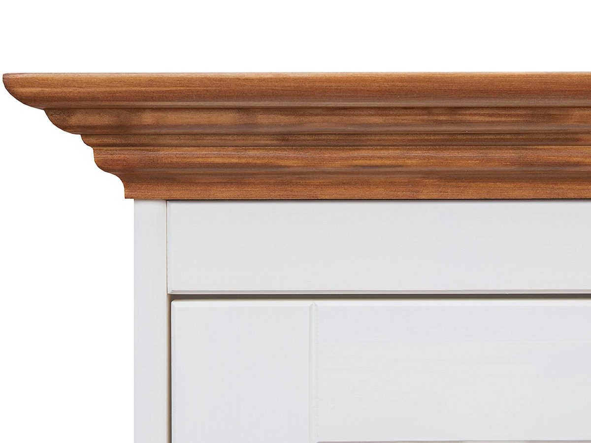 Co najważniejsze prezentowana klasyczna biała szafka RTV INGRID to produkt polski, wykonany z dbałością o każdy szczegół. Przede wszystkim materiałem wykonania mebla jest drewno sosny fińskiej, co gwarantuje solidność oraz trwałość na lata. Szafka zaprojektowana w stylu prowansalskim, doskonale wpasuje się w aranżacje klasyczne, z uwzględnieniem tych o charakterze vintage. Niewątpliwie subtelne frezy, podstawa oraz krawędzie blatu na styl prowansalski przykują wzrok oraz zachwycą niejeden gust.