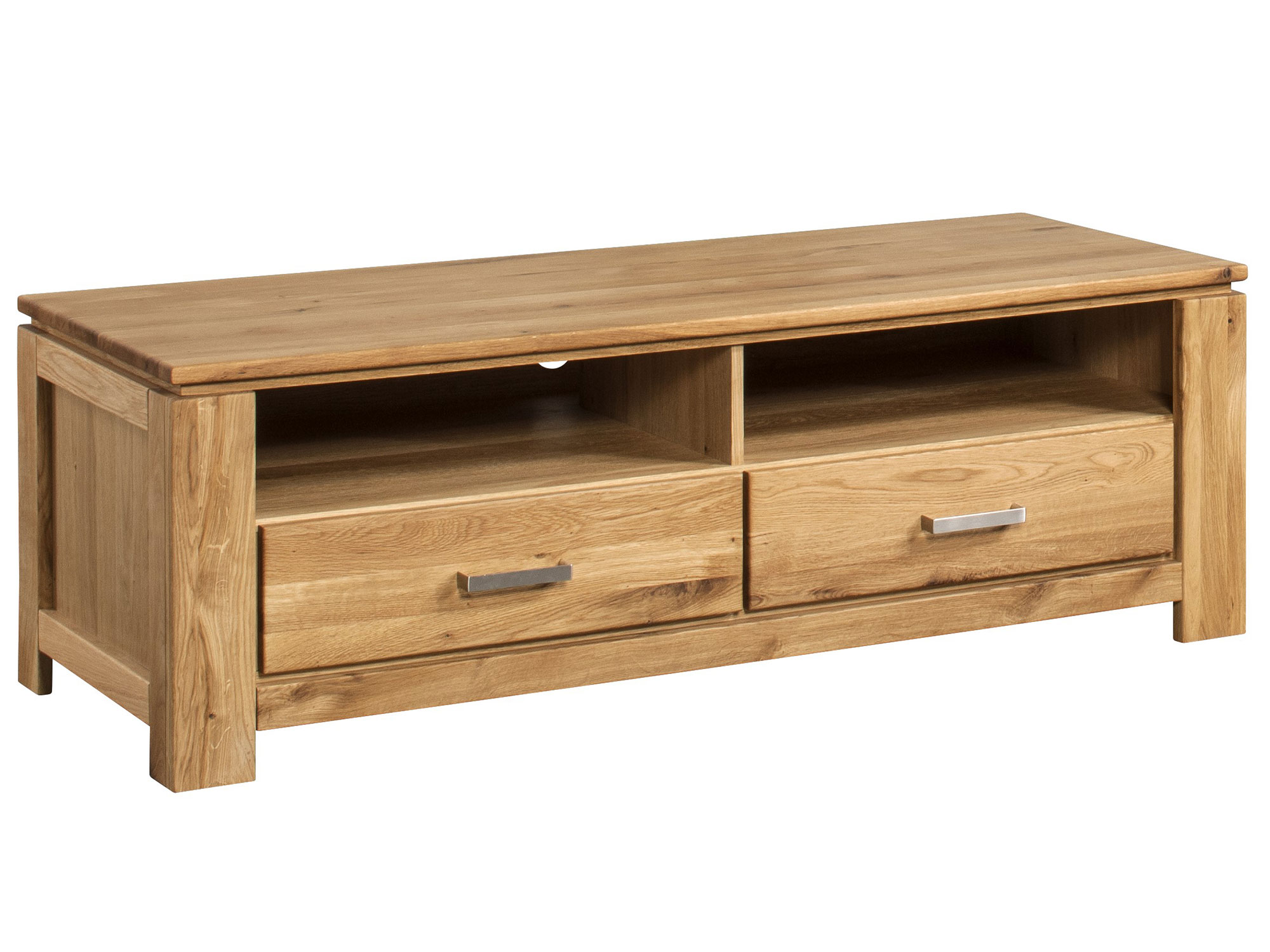 Stylowa i nowoczesna komoda drewniana RTV a wyprodukowana z najlepszej klasy litego dębu idealnie z elementami fornirowanymi dopasuje się do każdego wnętrza niejednej jadalni czy sypialni lub salonu. Co więcej stabilna konstrukcja oraz gustowne i awangardowe wykończenie sprawią, że komoda pod telewizor drewniana szykownie upiększy niejedno pomieszczenie. Dodatkowo mebel posiada pojemne szuflady i praktyczne półki, które stanowią dogodne miejsce dla sprzętu RTV oraz innych drobiazgów.