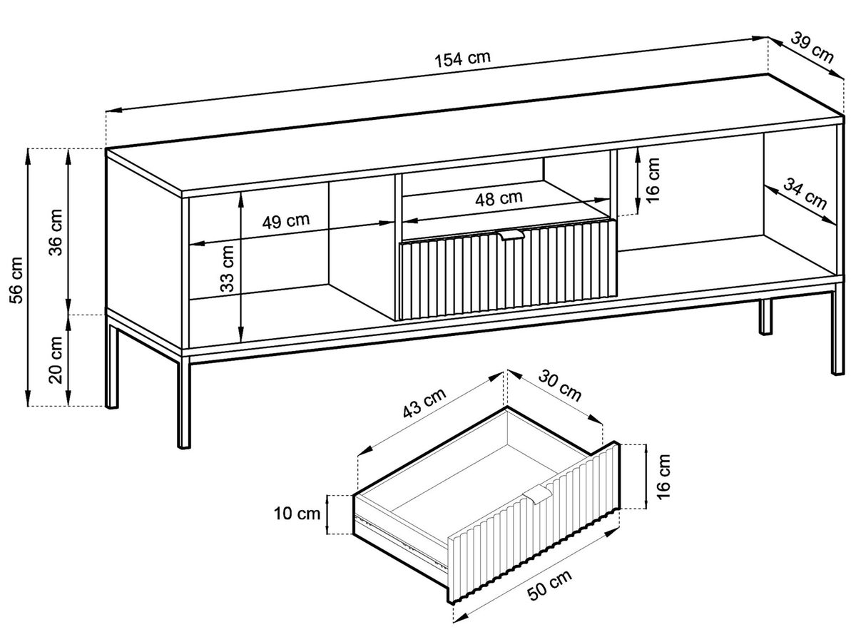 Głębokość: 39 cm / Szerokość: 154 cm / Wysokość: 56 cm