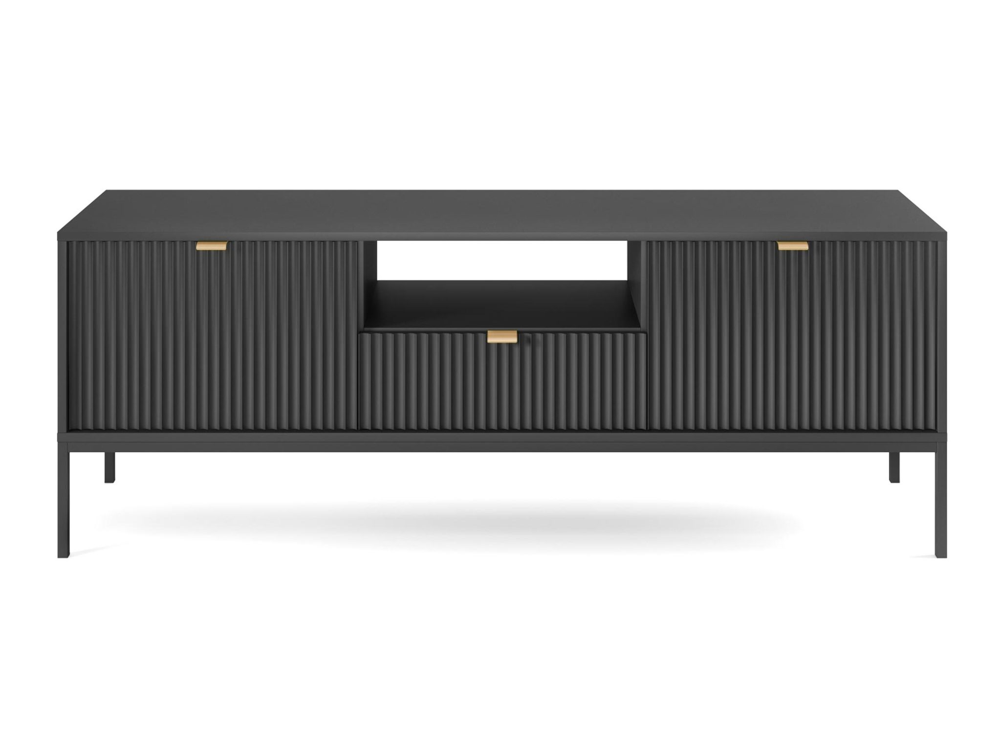 Odkryj nowy wymiar elegancji z Szafką RTV 154 Sivas, która łączy w sobie wyszukaną estetykę z praktycznym designem. Dzięki unikalnemu połączeniu złotych uchwytów z ryflowanymi frontami, dostępnymi w trzech kolorach – czarnym, szarym i białym, ten mebel stanie się centralnym punktem każdego salonu, dodając mu wyrafinowanego charakteru.