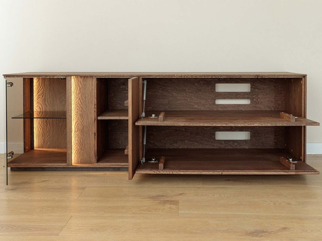 Nowoczesna szafka RTV Essentia – naturalne drewno i funkcjonalność w jednym