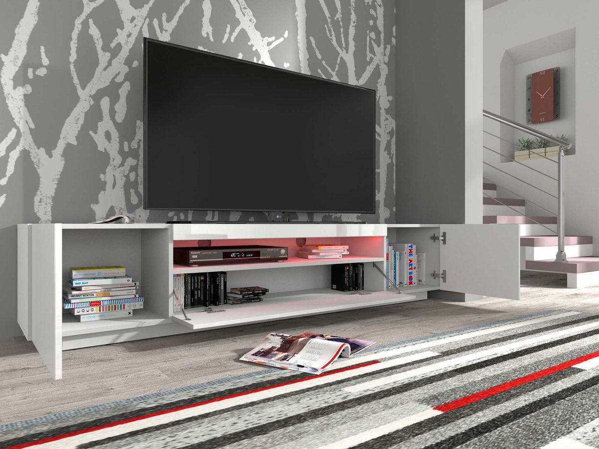 Przede wszystkim oferowana szafka RTV 200 LUMA charakteryzuje się zarówno wysokimi walorami estetycznymi jak i duża praktycznością. Duża wnęka podświetlana oświetleniem LED pozwala na zamontowanie niezbędnych dekoderów oraz konsoli. Co więcej, trzy pojemne szafki to z kolei dodatkowa przestrzeń na przechowywanie, co jest bardzo funkcjonalnym rozwiązaniem. Ponadto, mebel dostępny jest w kilku wersjach kolorystycznych, zaczynając od klasycznego białego aż po nieszablonowe połączenie czerni z dębem artisan. Z tego względu niewątpliwie każdy znajdzie coś dla siebie. Dodatkowo brak uchwytów to nowoczesne rozwiązanie, które nie przytłacza mebla, co pozwala na uzyskanie schludnego oraz eleganckiego wnętrza.