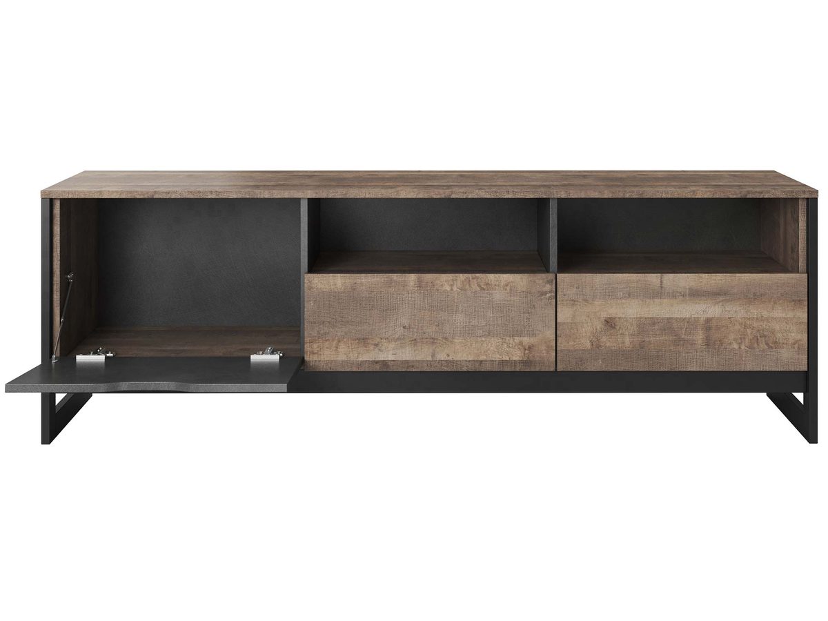 Szafka RTV w dekorze dąb artisan i czarne wnętrze – industrialna aranżacja