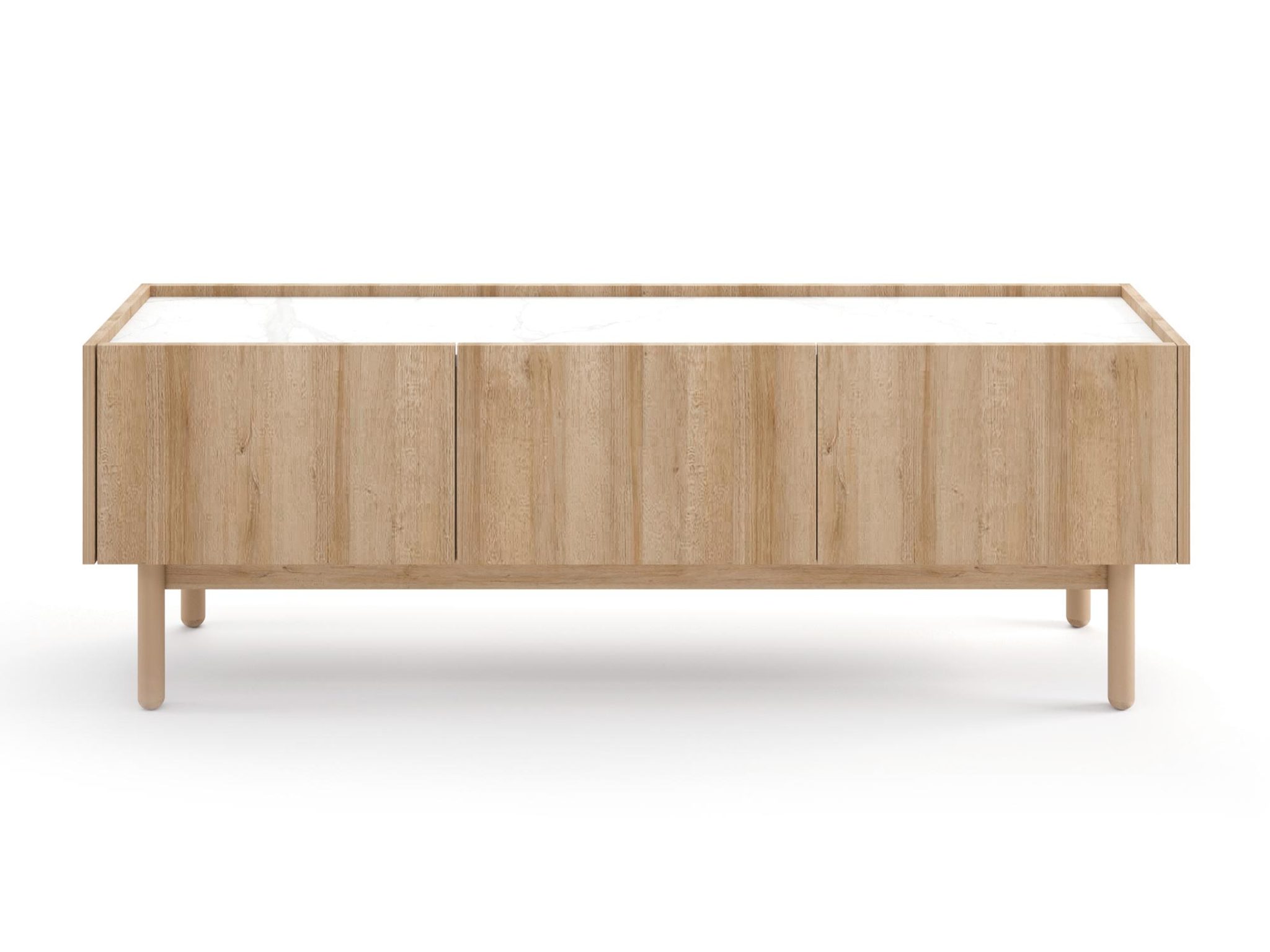 Szafka na Nóżkach RTV 144cm Baro została zaprojektowana z myślą o tych, którzy cenią sobie połączenie nowoczesności z elementami klasyki. Eleganckie usłojenie drewna w połączeniu z subtelnym blaskiem marmuru Bianco nadaje wnętrzom poczucie przestrzeni i otwartości, jednocześnie wprowadzając element luksusu.