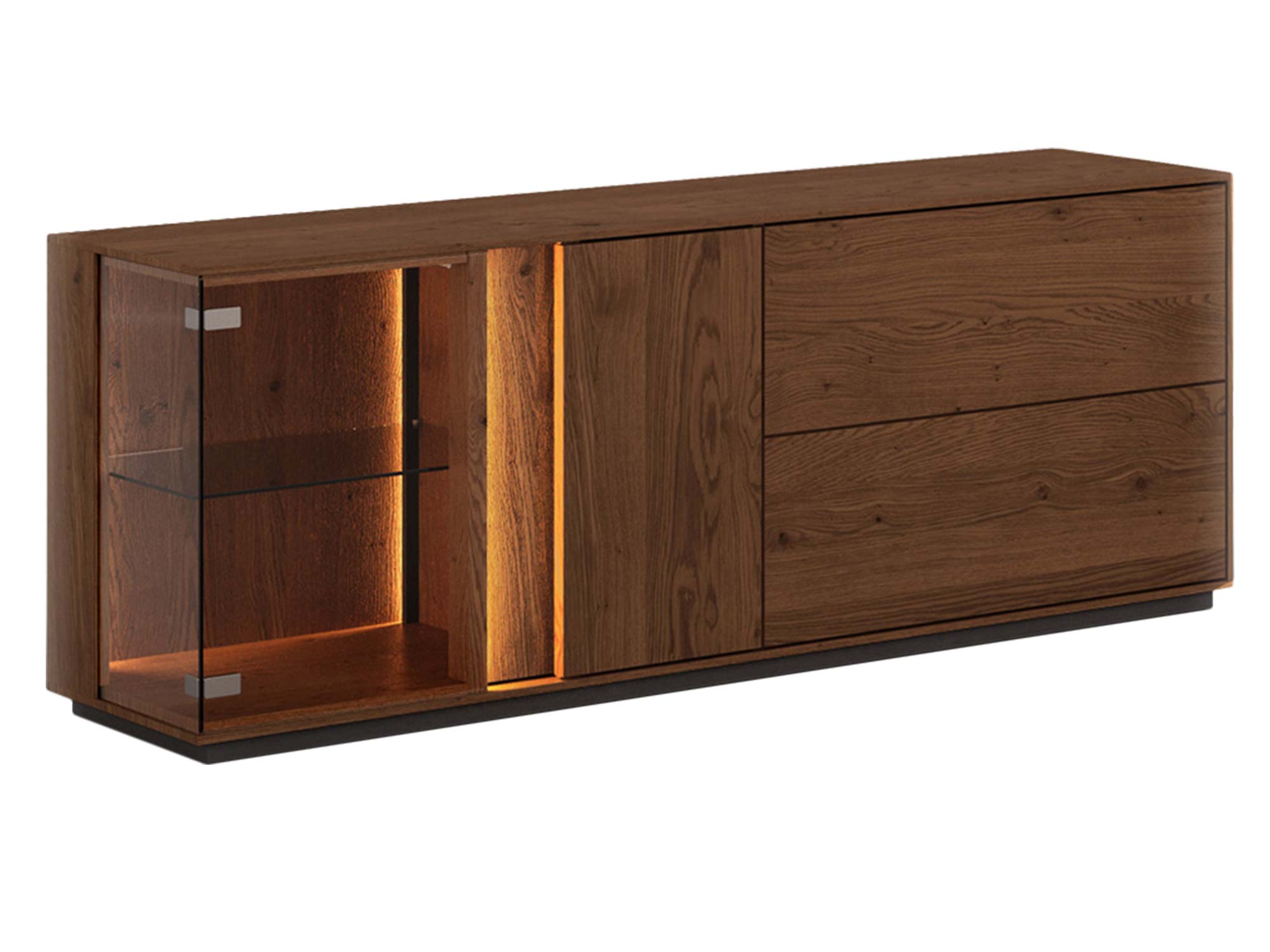 Szafka RTV dębowa z przeszkleniem i oświetleniem – nowoczesna elegancja w praktycznej formie