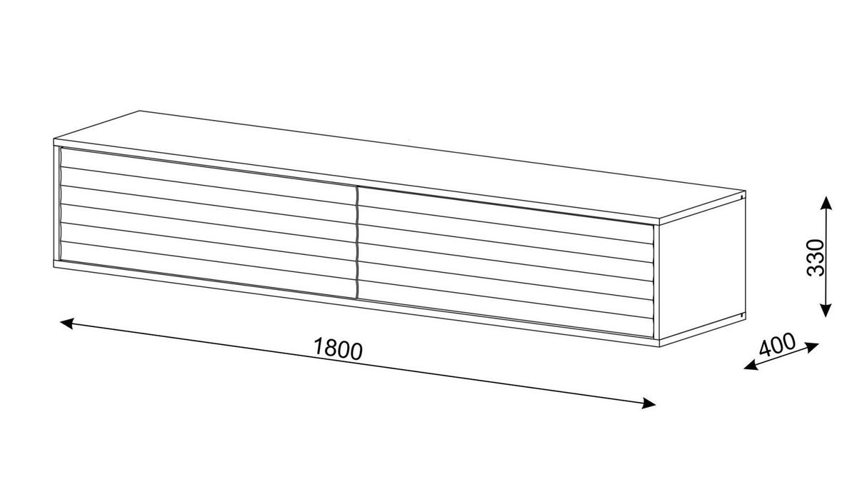 Techniczny rysunek szafki RTV z wymiarami do produkcji kolor biały i czarny