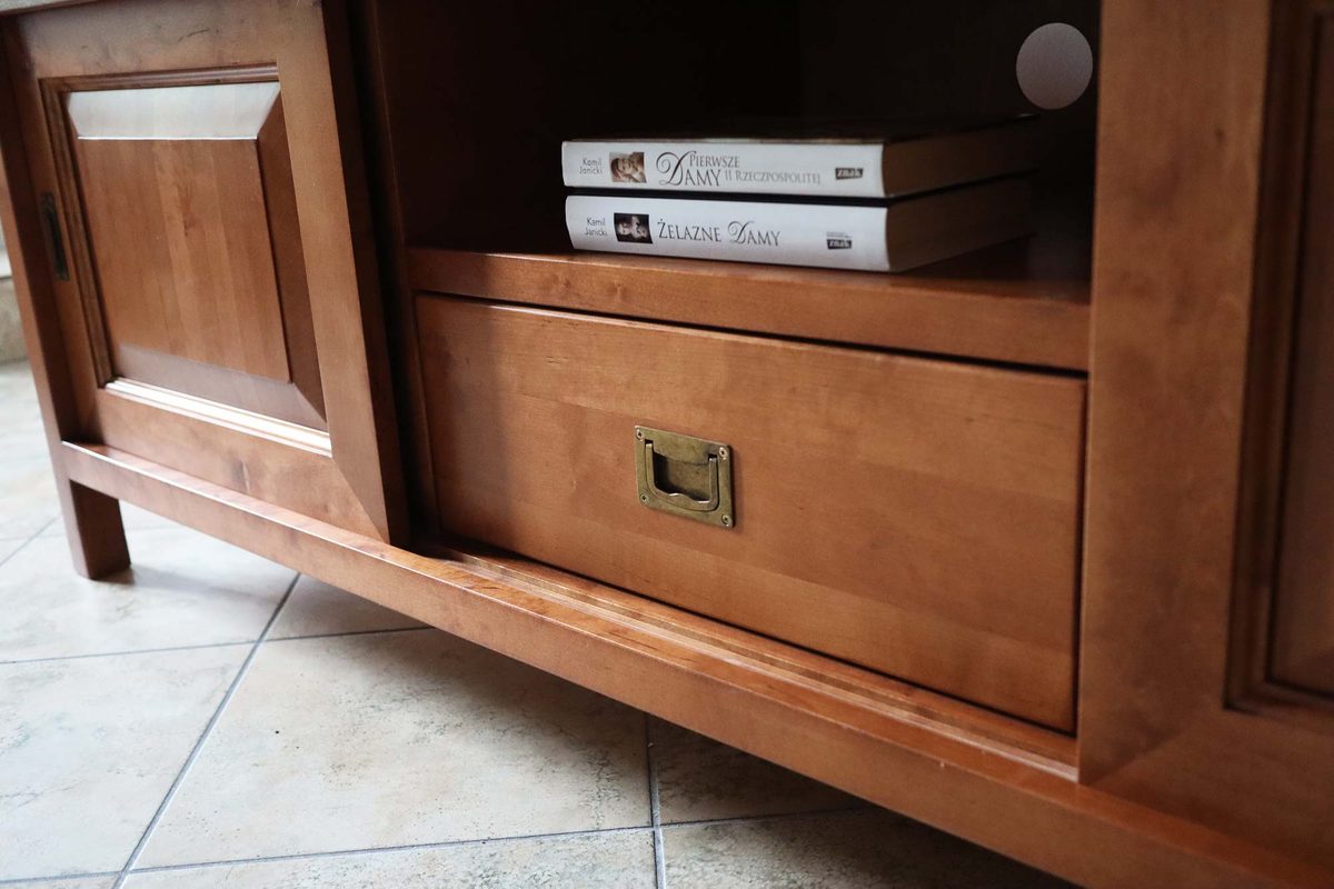 Szafka RTV Długa z Drewna Brzozowego MENDOZ detal