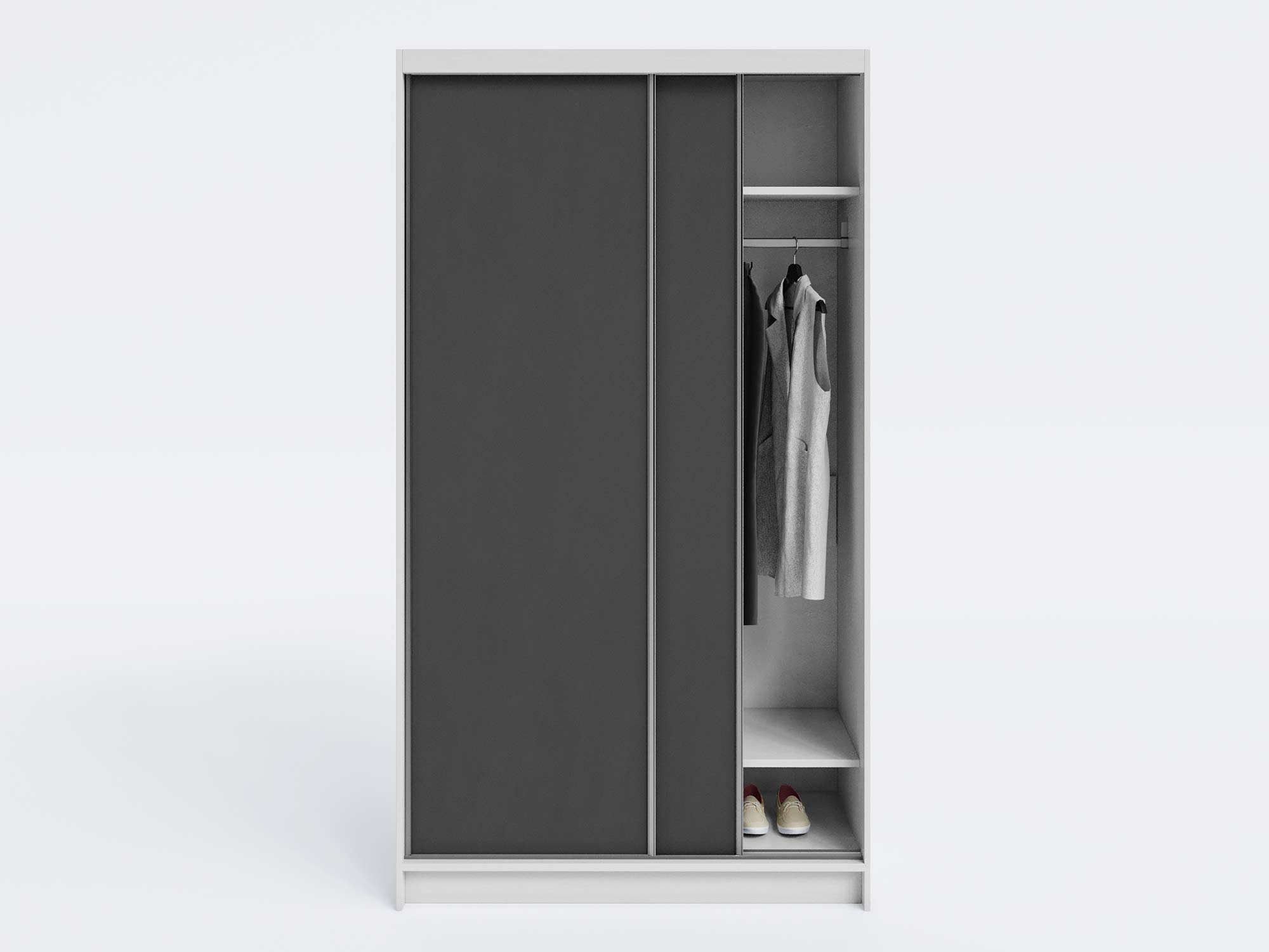 Fronty dostępne są w różnych wariantach kolorystycznych – biały, szary, szary z dębem czy biały z dębem – co daje możliwość dopasowania szafy do wielu stylów wnętrzarskich. Lustro w drzwiach to dodatkowy atut – optycznie powiększa przestrzeń, rozjaśnia wnętrze i eliminuje potrzebę dodatkowego lustra w pokoju.
