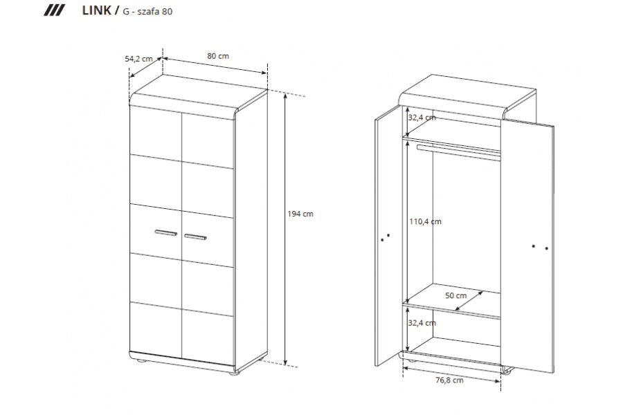 Szerokość 80 cm Wysokość 194 cm Głębokość 50 cm