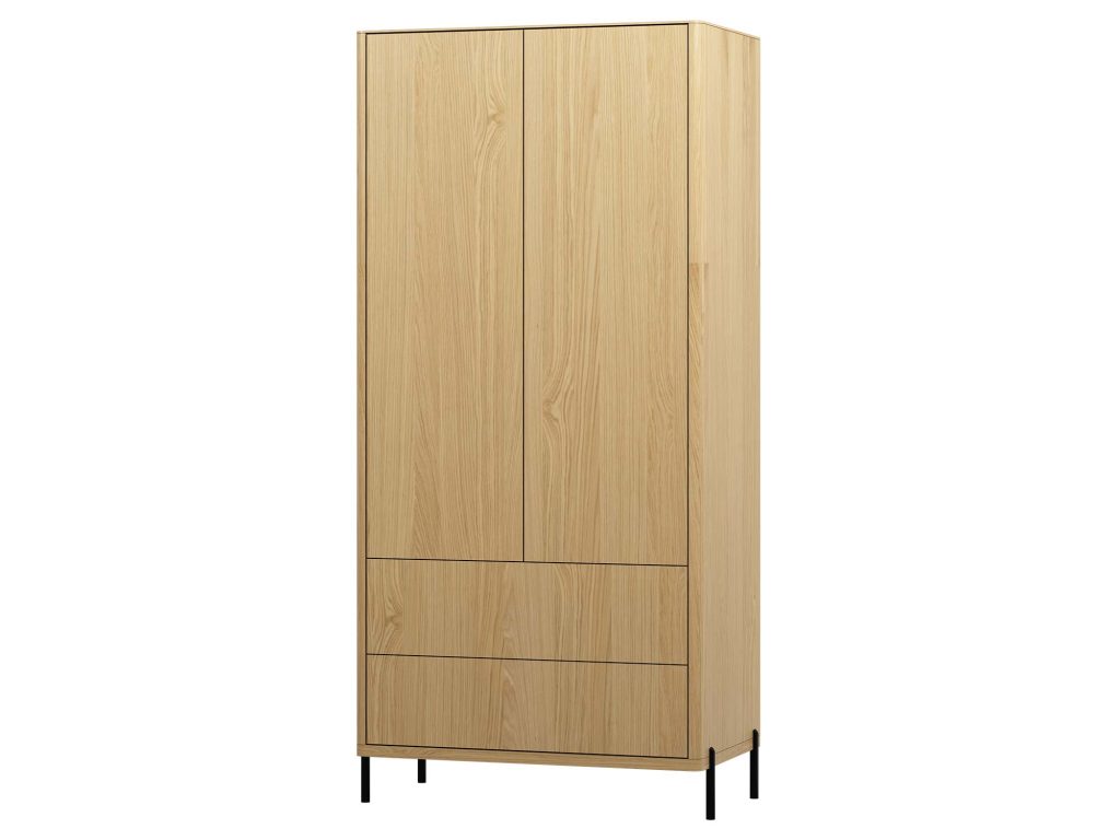 Dzięki dwóm pojemnym szufladom i dwudrzwiowej konstrukcji, szafa oferuje optymalną przestrzeń do przechowywania. Ubrania, akcesoria czy pościel znajdą w niej swoje miejsce, a Ty zyskasz porządek i elegancję w jednym.