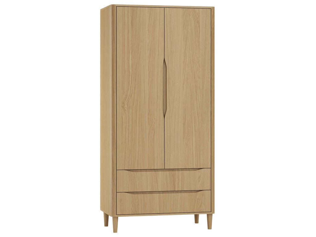 Szafa 2D2S posiada dwoje drzwi oraz dwie pojemne szuflady, które umożliwiają wygodne przechowywanie ubrań, bielizny oraz drobnych akcesoriów. System soft close zapewnia komfort użytkowania i eliminuje nieprzyjemny hałas przy zamykaniu, a dodatkowa możliwość cichego domyku podkreśla wysoką jakość wykonania. Maksymalny wysuw szuflad sprawia, że dostęp do zawartości jest zawsze łatwy i wygodny.