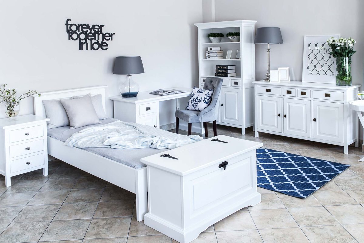Komplet białych drewnianych mebli do sypialni aranżacja MENDOZ