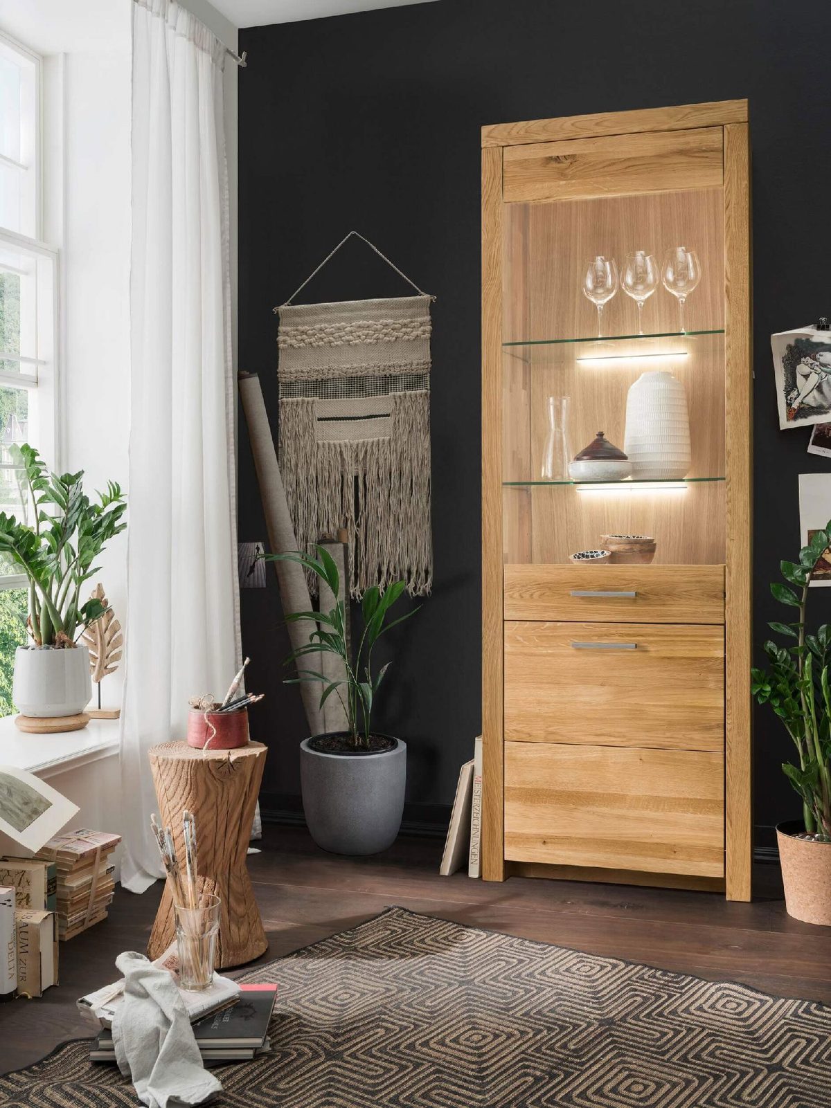 Wybierając naszą Witrynę I do Salonu lub Jadalni Solis, wybierasz elegancję, trwałość i funkcjonalność. Przekonaj się sam, jak ta elegancka witryna z litego drewna dębowego może przemienić Twoje wnętrze i uczynić je jeszcze bardziej wyjątkowym.