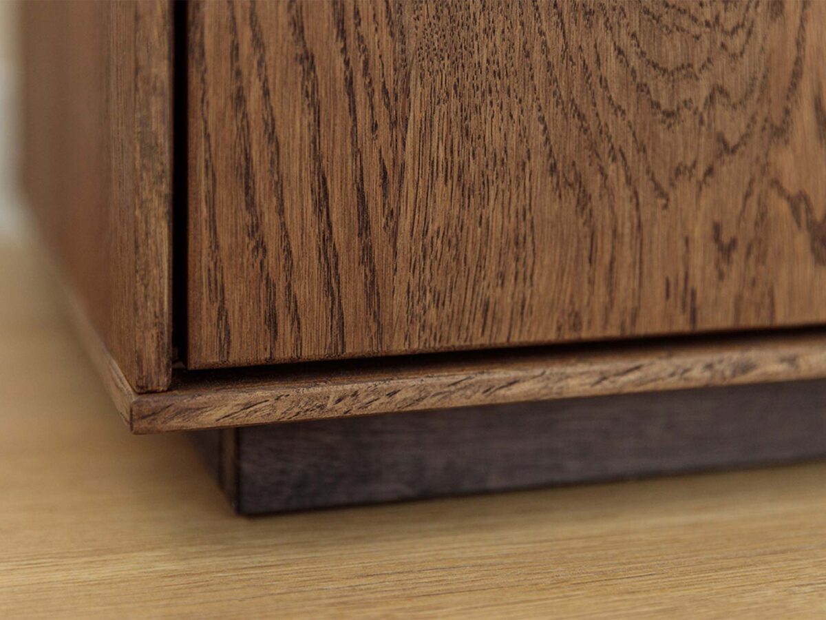 Dąb dziki to drewno z charakterem – pełne życia, odporne na uszkodzenia i niezwykle szlachetne wizualnie. W witrynie Essentia każdy słój, każde naturalne przebarwienie opowiada swoją własną historię. Olejowane wykończenie wydobywa głębię koloru tabacco, jednocześnie chroniąc powierzchnię przed śladami codziennego użytkowania. Dzięki temu mebel przez lata zachowuje swój pierwotny urok.