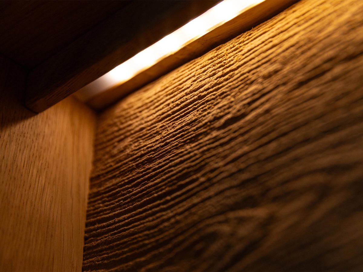 • Olejowane wykończenie – Zabezpiecza drewno przed codziennym użytkowaniem, podkreślając jednocześnie jego naturalne słoje i strukturę.