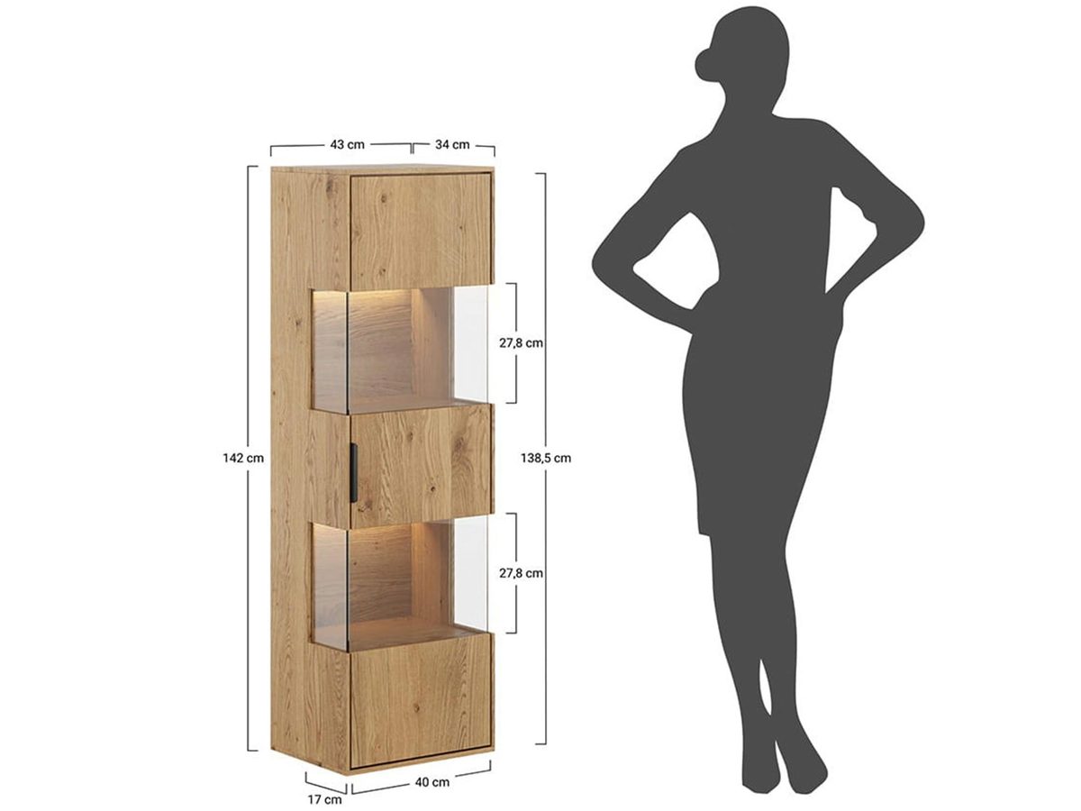 • Oświetlenie w zestawie – Delikatne oświetlenie witryny pozwala na efektowną prezentację przedmiotów i dekoracji, jednocześnie tworząc przytulną atmosferę w pomieszczeniu.