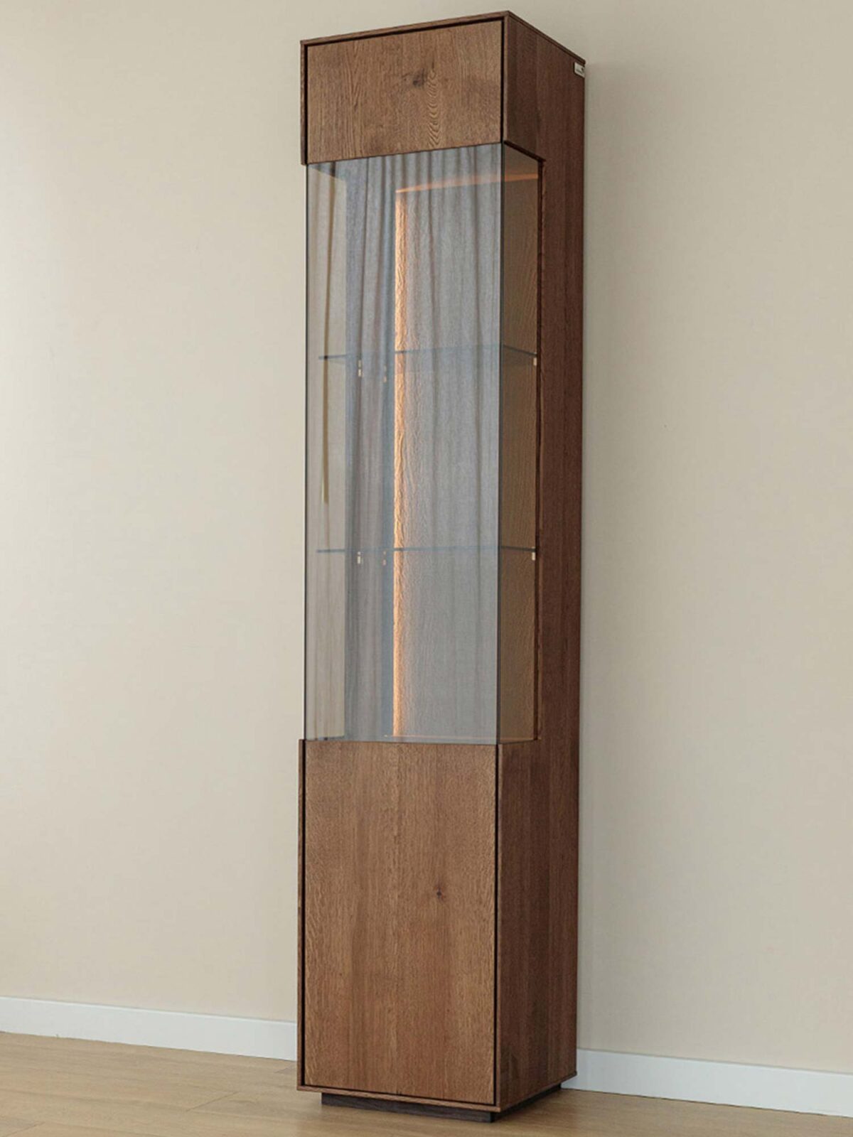 Minimalistyczna dębowa nowoczesna witryna Essentia to esencja współczesnego projektowania: czysta forma, szlachetny materiał i światło, które buduje klimat. Wąska lewa orientacja, lity dziki dąb w kolorze tabacco, system tip-on i LED w zestawie – wszystko po to, by porządkować i eksponować z klasą. Jeśli chcesz dodać wnętrzu głębi bez przeładowania, to mebel zaprojektowany właśnie dla Ciebie.