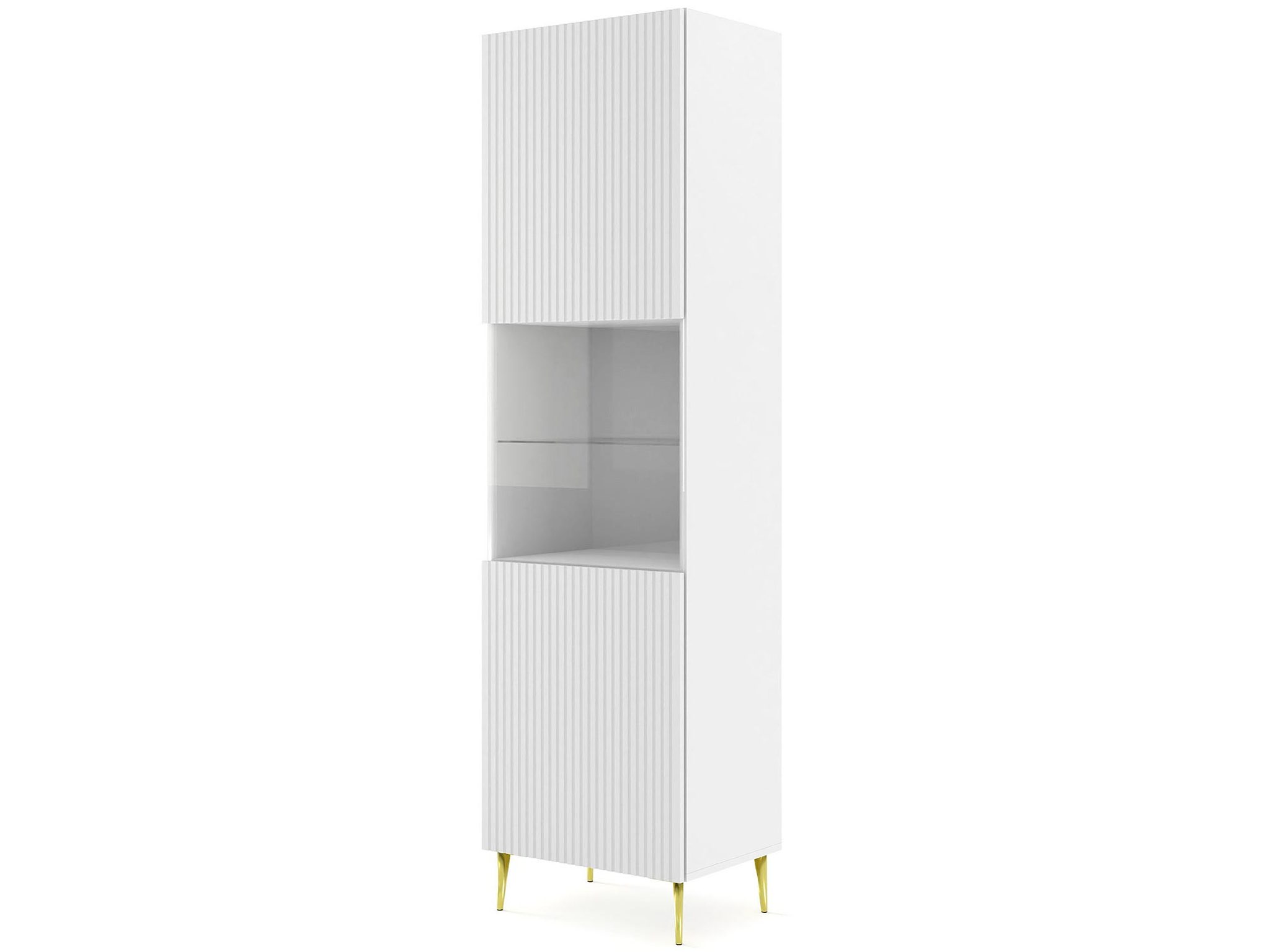 Stylowa Witryna Navia na Ozdobnych Nóżkach to mebel, który wprowadzi do Twojego wnętrza nowoczesność i elegancję. Biały matowy korpus i fronty nadają wnętrzu świeżości i lekkości, a złote nóżki dodają mu luksusowego charakteru. Dzięki temu witryna Navia będzie doskonałym uzupełnieniem zarówno minimalistycznych, jak i bardziej klasycznych aranżacji, wnosząc do nich odrobinę nowoczesnego stylu.