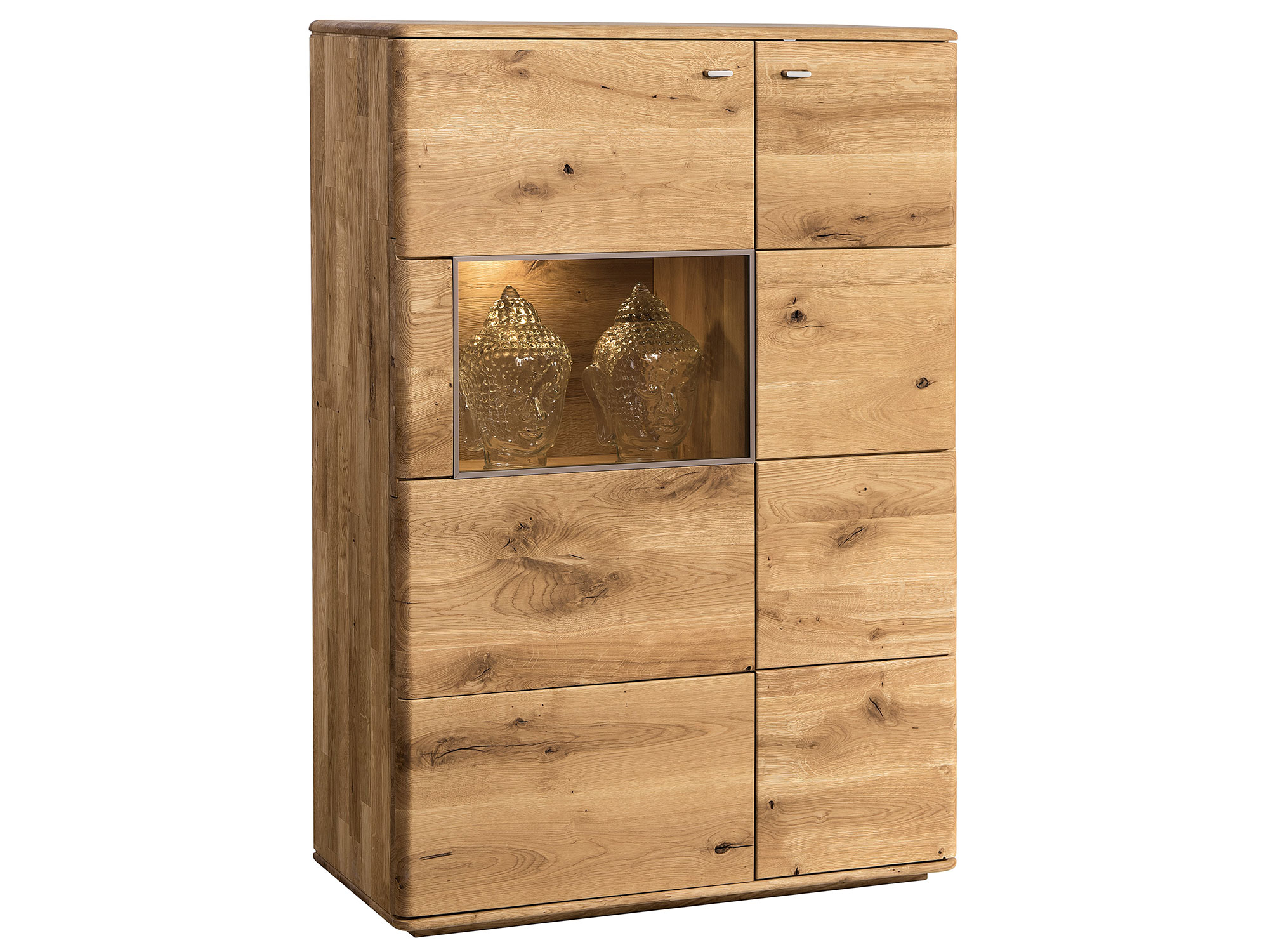 Stylowa i nowoczesna Szafka Wysoka do Salonu Maseri zrobiona z litego drewna dębowego najlepszego gatunku z wspaniale wpasuje się w stylizację panującą w każdej jadalni, salonie i pokoju dziennym. Co więcej mocna konstrukcja oraz nowomodne, stylowe szlifowanie sprawią, że witryna pojedyncza dębowa wspaniale ozdobi każde wnętrze. Ponadto posiada funkcjonalne drzwiczki oraz część przeszkloną, która doskonale nadaje się do przechowywania i eksponowania pamiątek, drobiazgów lub zastawy. Dodatkowo meble świetnie sprawdzi się każdej jadalni lub salonie.