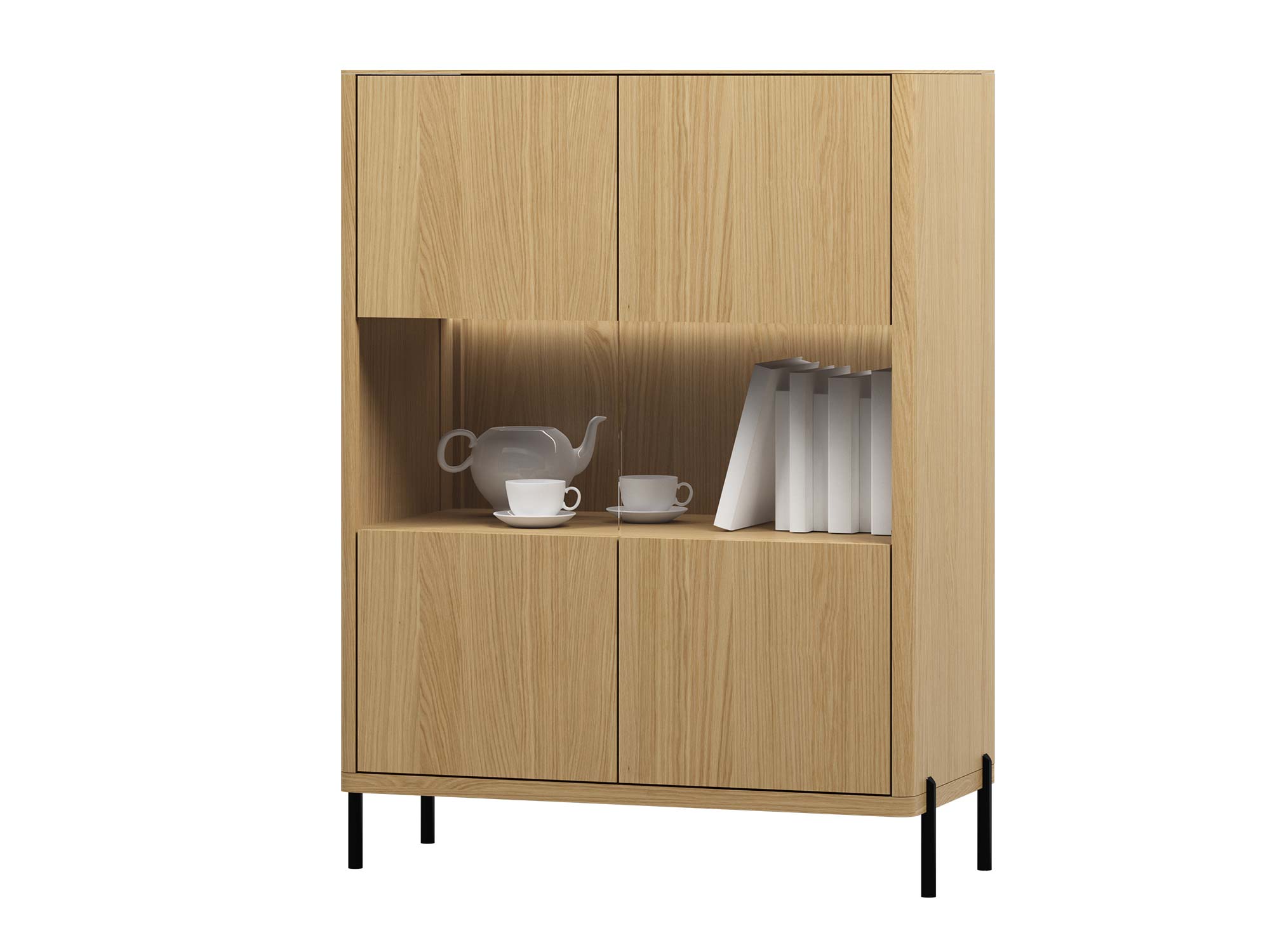 - Idealne proporcje – niższa bryła 130 cm nie dominuje przestrzeni, a 100 cm szerokości daje sporo miejsca na ekspozycję.