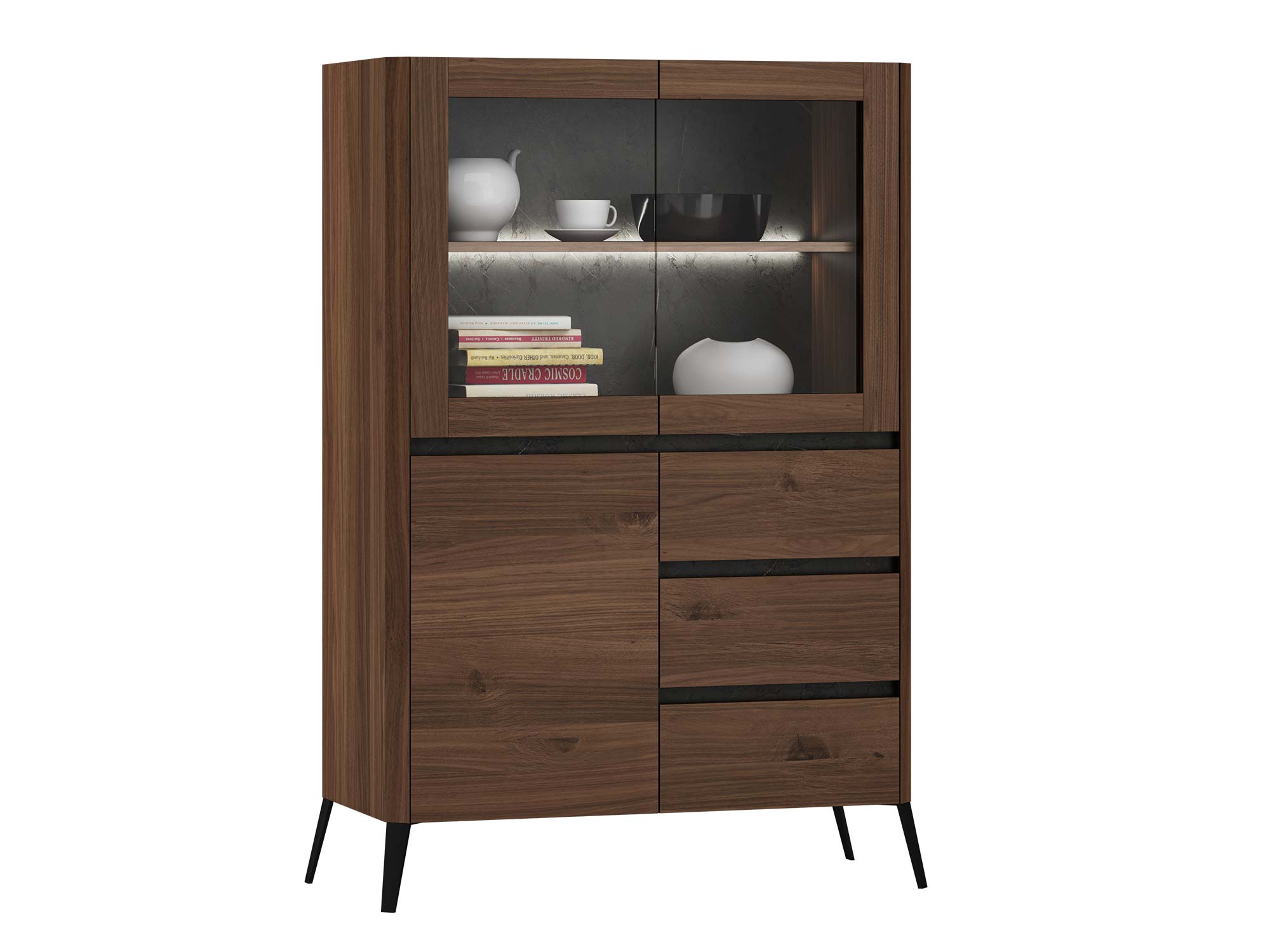 To mebel, który odpowiada na potrzeby zarówno dużych rodzin, jak i osób ceniących porządek i przestrzeń. Dzięki harmonijnemu połączeniu ciepłego orzecha baltimore i szarego kamienia, wnętrze nabiera przytulności, a jednocześnie prestiżowego charakteru.