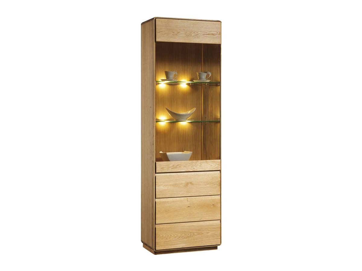 Stylowa i nowoczesna przeszklona witryna drewniana Seto lewostronna zrobiona z litego drewna dębowego najlepszego gatunku z fornirowanymi detalami wspaniale wpasuje się w stylizację panującą w każdej kuchni i jadalni. Co więcej mocna konstrukcja oraz nowomodne, stylowe szlifowanie sprawią, że witryna pojedyncza dębowa wspaniale ozdobi każde wnętrze. Dodatkowo mebel posiada funkcjonalne drzwiczki oraz część przeszkloną, która doskonale nadaje się do przechowywania i eksponowania pamiątek, drobiazgów lub zastawy. Ponadto witryna świetnie sprawdzi się każdej jadalni lub salonie.
