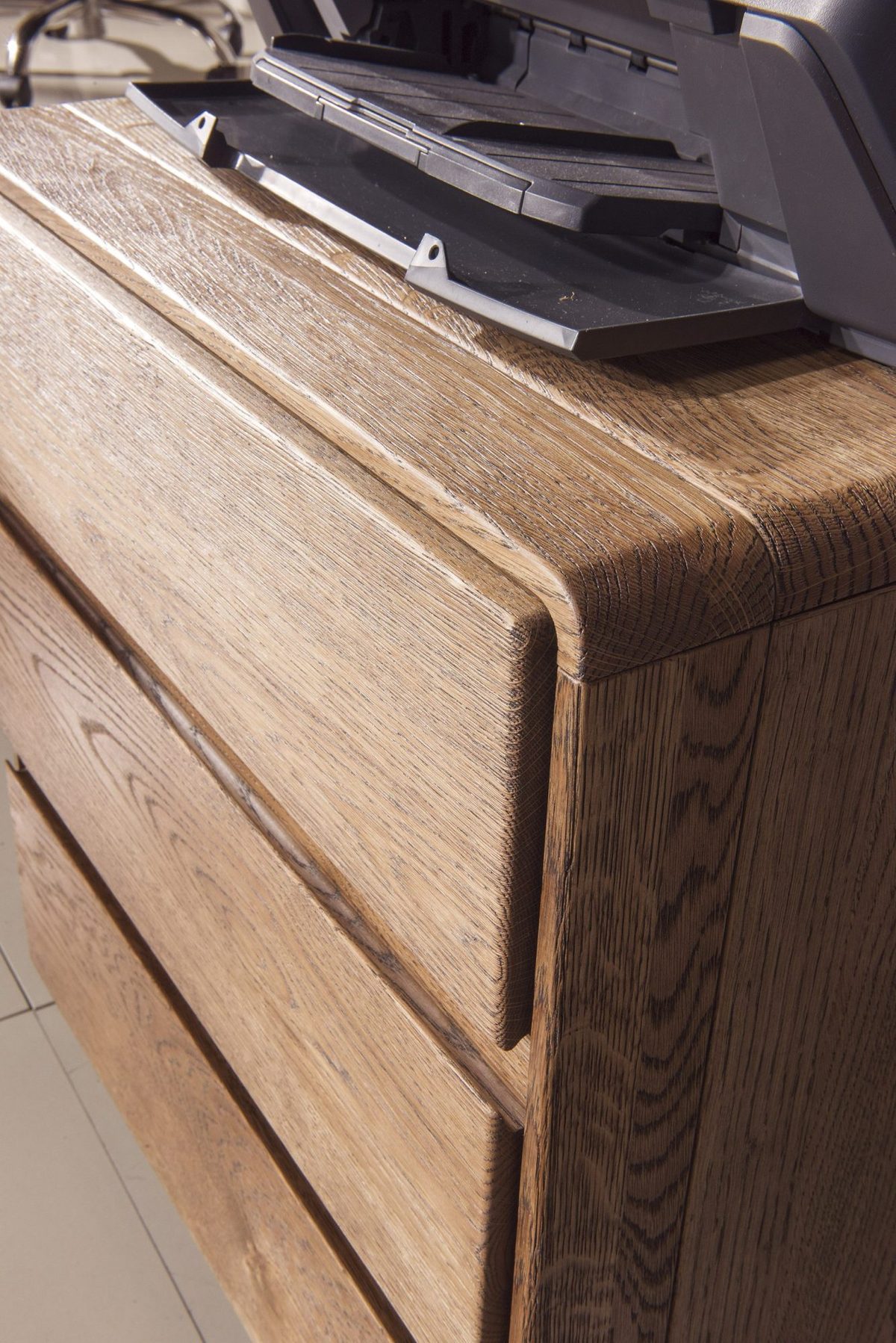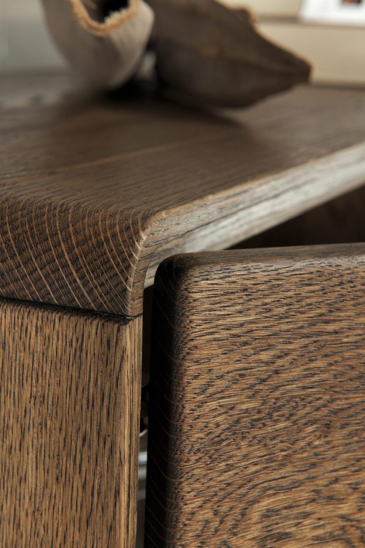 - Powierzchnia wykończona woskiem lub olejem, szczotkowana, czuć pory i słoje drewna