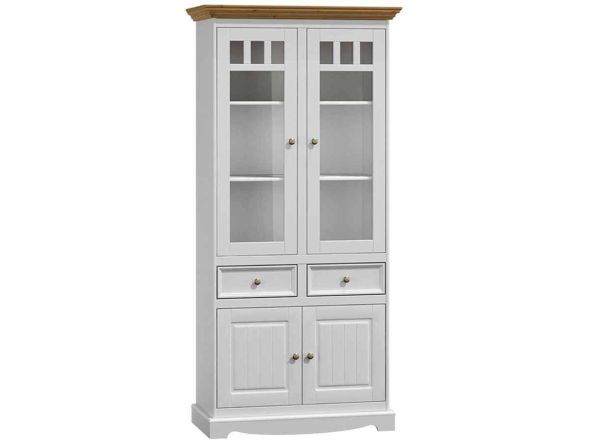 Oferowana drewniana witryna INGRID została zaprojektowana na styl prowansalski. Z tego względu doskonale wpasuje się w aranżacje o tejże stylistyce, jednak równie pięknie zaprezentuje się we wnętrzach glamour, art deco, vintage czy klasycznych. Dodatkowo ze względu na doskonałą jakość wykonania, mebel z pewnością posłuży wiele lat. Jest to zarówno propozycja do salonu jak i jadalni czy kuchni. Witryna posiada przestrzeń z półkami za przeszklonymi drzwiczkami, co daje wystarczająco przestrzeni na wyeksponowanie domowej zastawy, zestawu kawowego czy pamiątek rodzinnych. Co więcej dwie szuflady oraz przestrzeń zamknięta na samym dole daje dużo miejsca na zorganizowanie przestrzeni. Dodatkowo uchwyty stylizowane na stare złoto/srebro dodają witrynie wyjątkowego klimatu i charakteru vintage tworząc mebel unikalny. Ponadto subtelne frezy i ozdobny wieniec bezsprzecznie dodają uroku.
