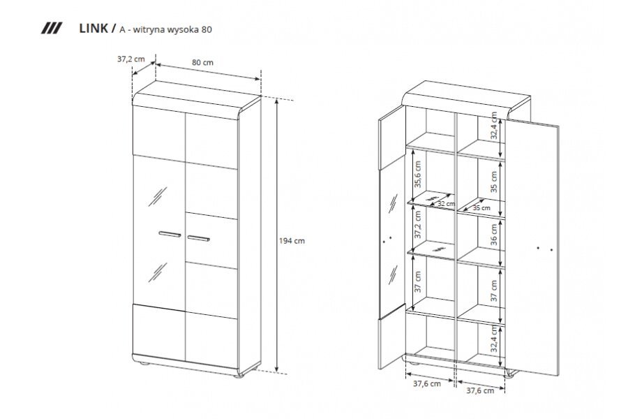 Szerokość 80 cm Wysokość 194 cm Głębokość 37 cm