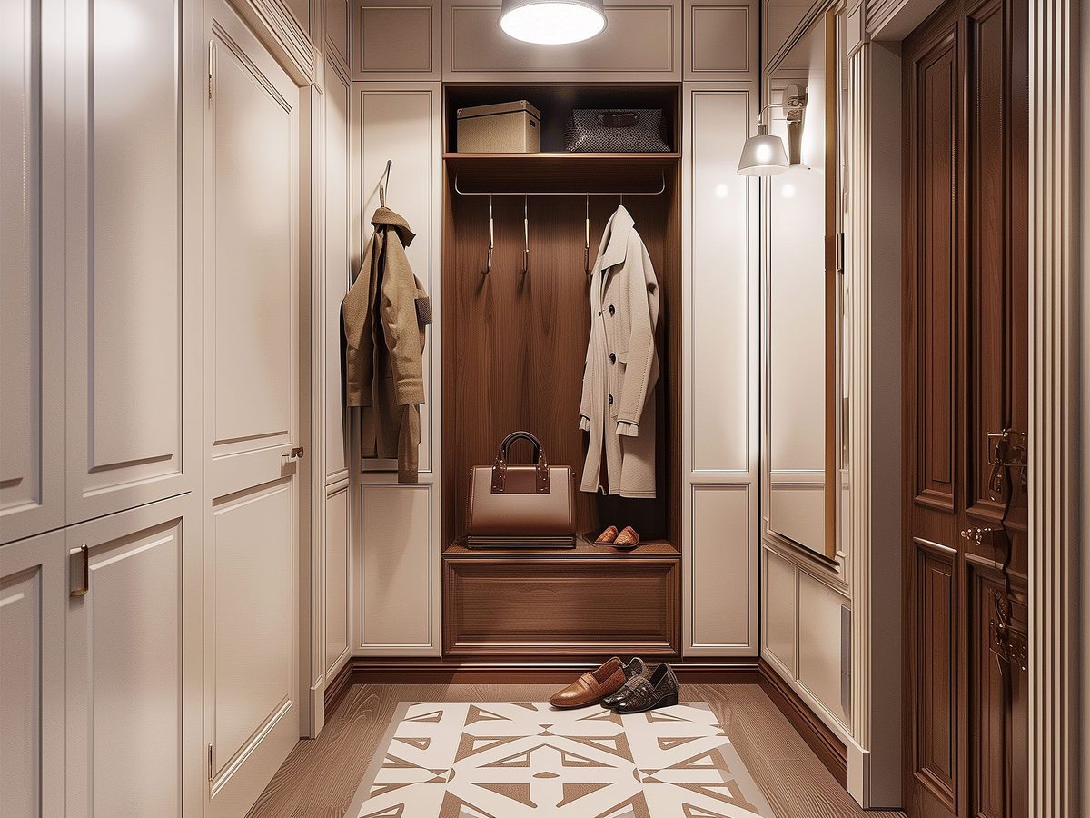 • Multifunkcjonalność: Szafa z siedziskiem w małym przedpokoju spełnia podwójną rolę – zapewnia miejsce do przechowywania oraz wygodne siedzisko do zakładania butów. Takie rozwiązanie pozwala zaoszczędzić miejsce i zachować porządek w najmniejszych przestrzeniach.