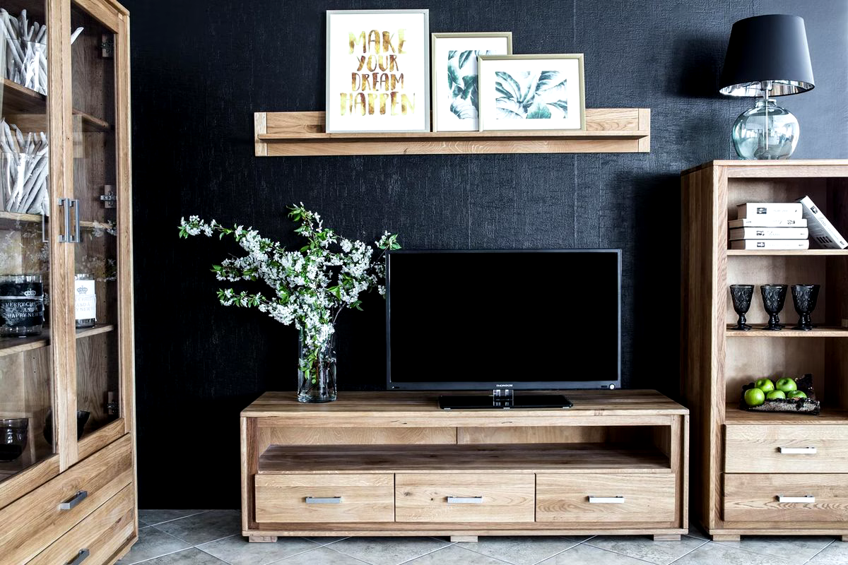 Szukając szafki pod telewizor do swojego salonu zwróć uwagę przede wszystkim na jej funkcjonalność oraz solidny materiał wykonania. Zdecydowanie szafka wykonana z litego a nie z płyty MDF będzie dużo trwalszym, solidniejszym i stabilniejszym rozwiązaniem. Ponadto ważne jest to aby szafka RTV zapewniła wystarczająco dużo miejsca na przechowywanie. Praktyczna drewniana szafka wyposażona we wnęki czy półki zapewni ci przestrzeń na dekoder, odtwarzacz, konsolę do gier, płyty czy inne drobiazgi. Dlatego to bardzo przydatne rozwiązanie.