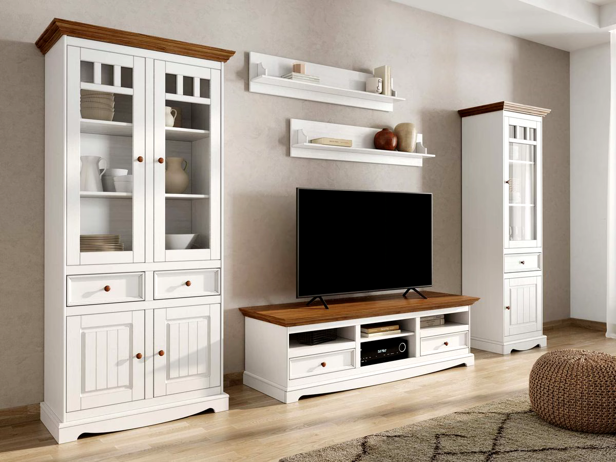 Szafka RTV Biała z Drewnianym Blatem sprawdzi się doskonale jako wyposażenie wnętrz urządzonych w różnych stylach m.in. rustykalnym, prowansalskim czy klasycznym. Pozwoli ona stworzyć stylowy kącik telewizyjny w Twoim salonie. Drewniana konstrukcja tworzy doskonałe miejsce nie tylko na telewizor, blat może bowiem posłużyć do ekspozycji dekoracji czy rodzinnych zdjęć.
