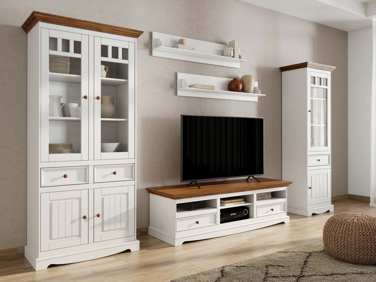 Szafka RTV Biała z Drewnianym Blatem sprawdzi się doskonale jako wyposażenie wnętrz urządzonych w różnych stylach m.in. rustykalnym, prowansalskim czy klasycznym. Pozwoli ona stworzyć stylowy kącik telewizyjny w Twoim salonie. Drewniana konstrukcja tworzy doskonałe miejsce nie tylko na telewizor, blat może bowiem posłużyć do ekspozycji dekoracji czy rodzinnych zdjęć.