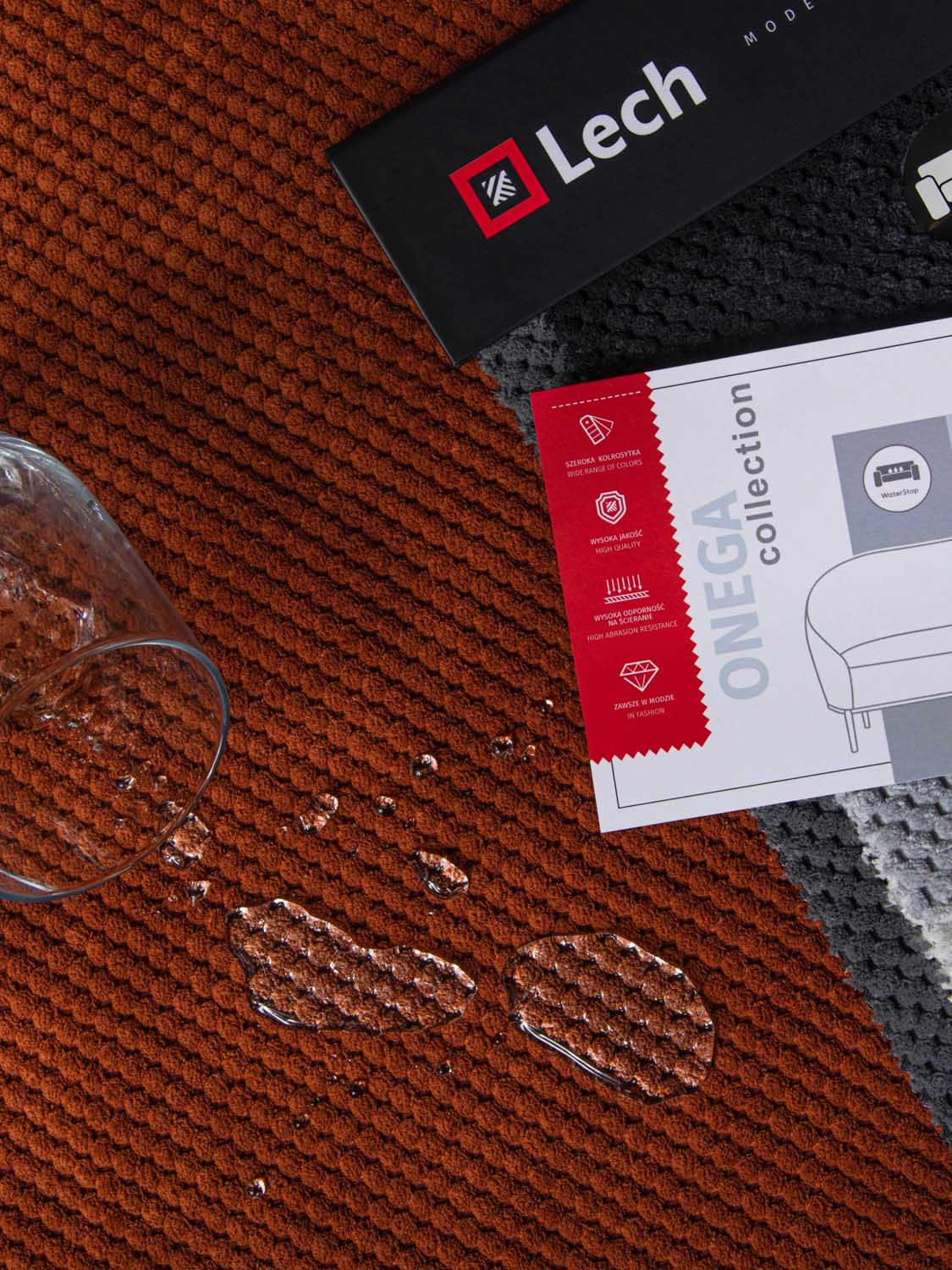 - WaterStop – tkanina o podwyższonej odporności na wchłanianie płynów, ułatwia czyszczenie i chroni przed zabrudzeniami.