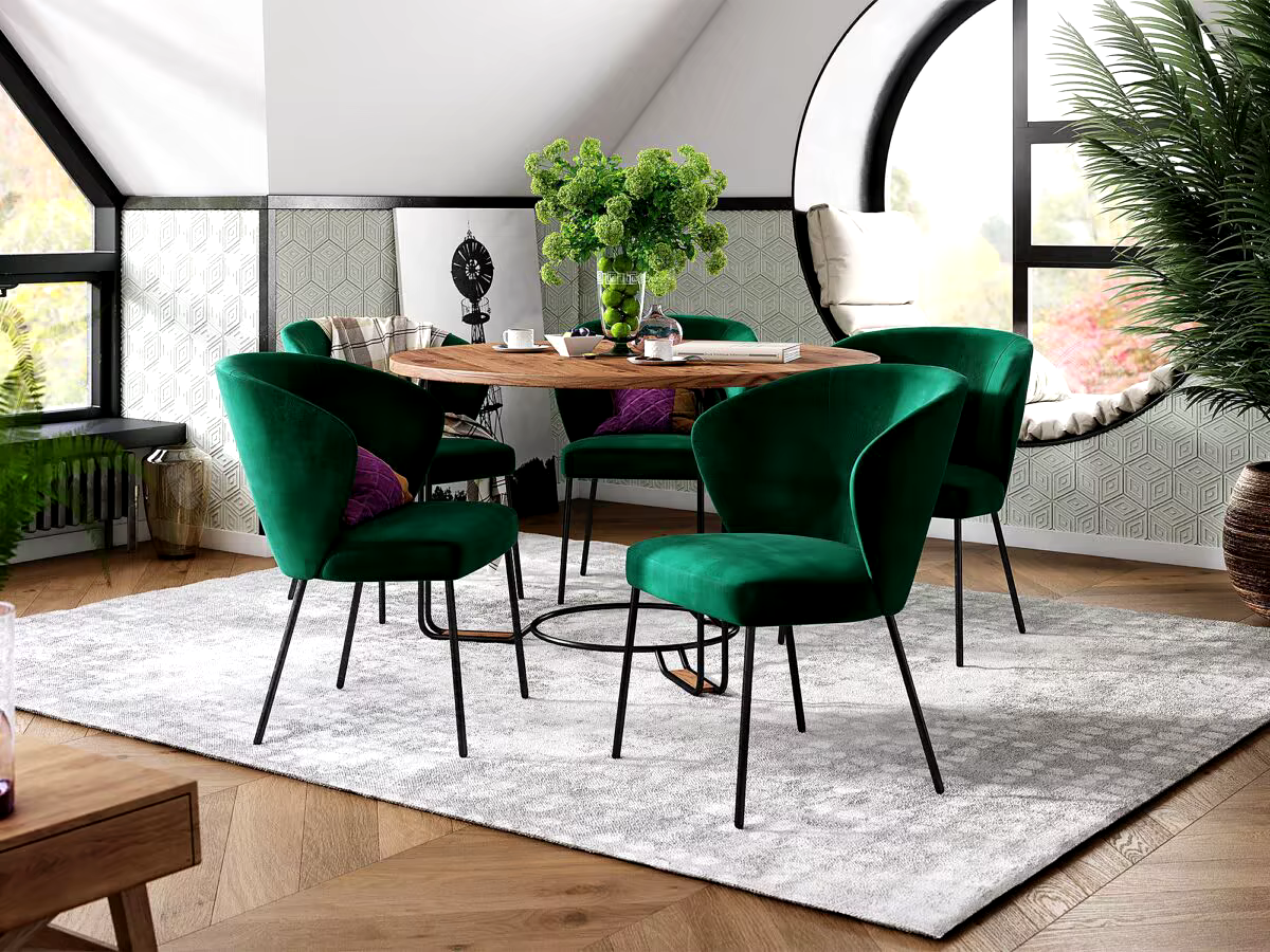 Dobór koloru krzeseł to ważny element aranżacji salonu, który może całkowicie zmienić charakter przestrzeni. Aby stworzyć spójny wygląd, wybierz krzesła w kolorach komplementarnych do palety barw Twojego salonu. Jeśli wnętrze jest utrzymane w neutralnych tonach, krzesła w żywych kolorach mogą dodać energii i dynamiki. Z kolei w bardziej kolorowych aranżacjach, lepiej sprawdzą się krzesła w stonowanych, spokojnych barwach. Pamiętaj, aby kolor krzeseł harmonizował również z materiałami, z jakich wykonane są inne elementy wnętrza, takie jak dywan, zasłony czy obicia kanap.